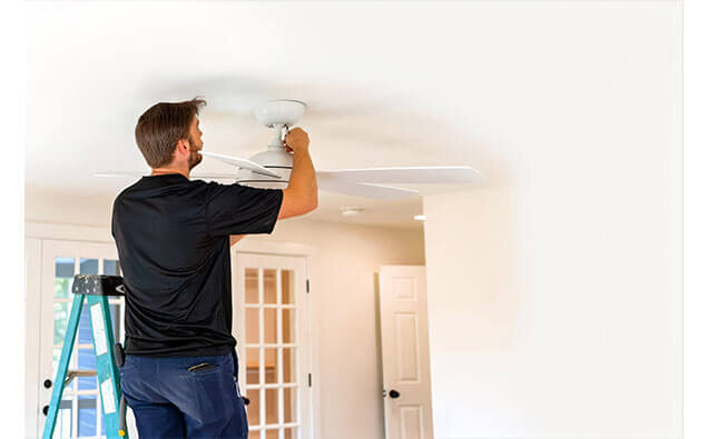 Professional installation of ceiling fans in bedrooms, living areas, and other spaces, including proper wiring, mounting, and switch control setup.